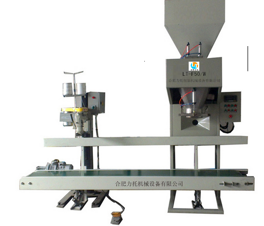 該機是人工協(xié)助上袋自動稱重、夾袋、充填、振動、推袋,輸送袋傳遞進(jìn)行自動縫包或封口,